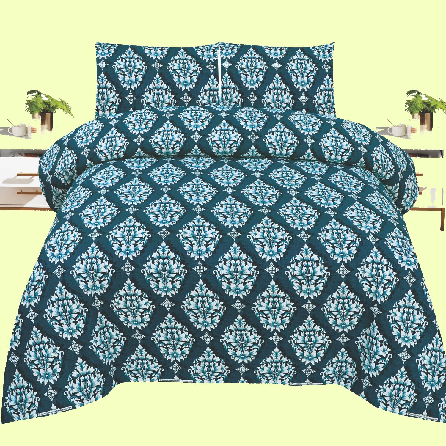 Blue Royale Damask Bedding Set – Premium Cotton Bedsheet with Classic Floral Patterns